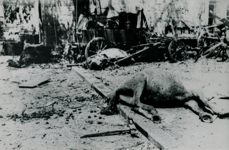 Tržnica je bila zasuta komadima ljudskog i životinjskog mesa. Ranjenici su uglavnom bili pokupljeni, a mrtva trupla ležala su kojekuda. Redarstvenici su ustreljivali osakaćene konje.
