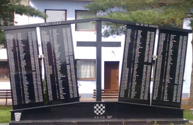 Najstrašniji pokolj u Prudu dogodio se 24. lipnja 1945., kada su u jednoj štali partizani poklali 320 muškaraca. Nisu smjeli biti pokopani, a kad su se trupla već toliko raspadala, zaudarajući na ljetnoj žezi pobacani su u rijeku Bosnu, odnosno Savu.